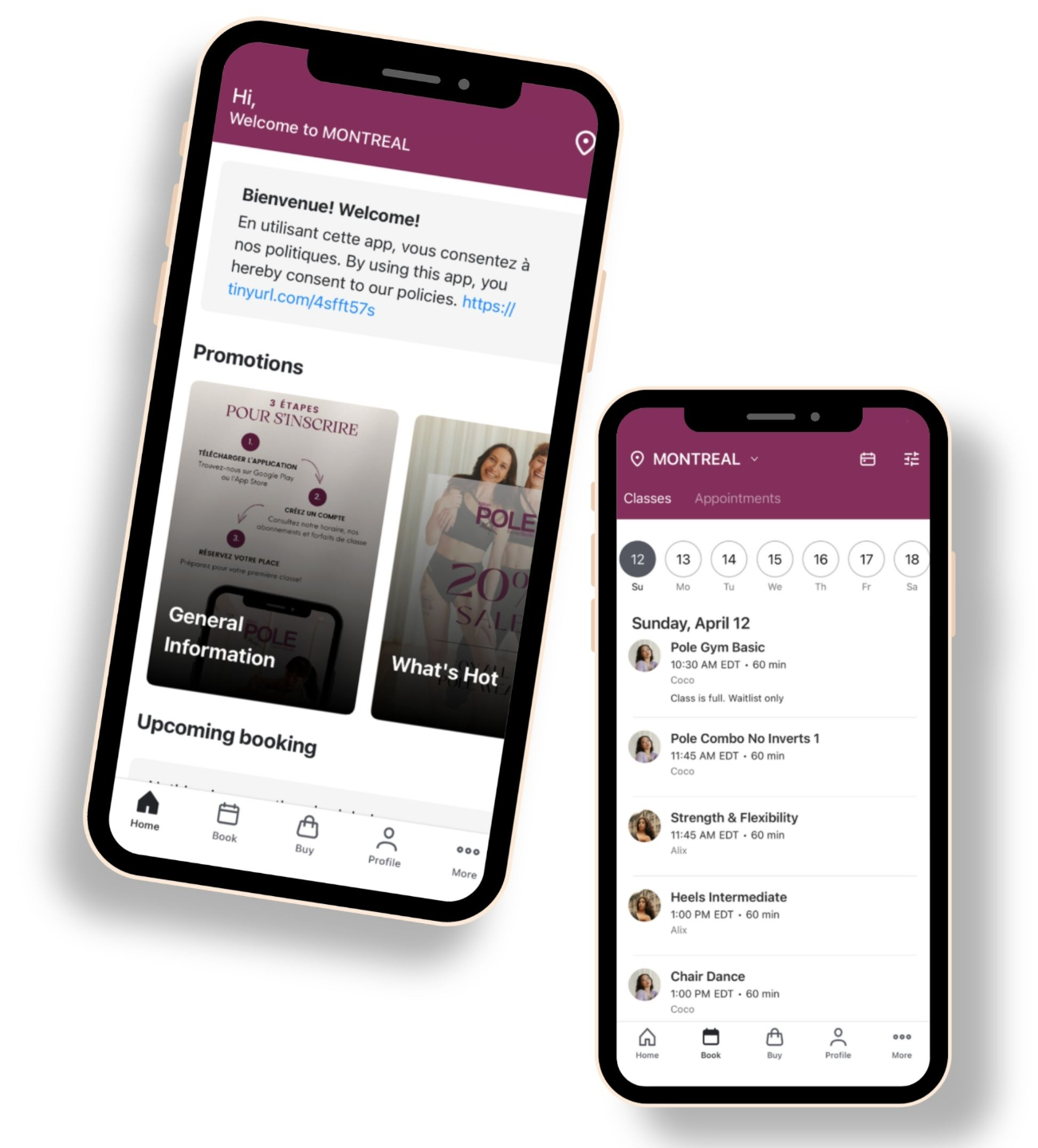 Consultez notre horaire et réservez vos classes à travers notre application.